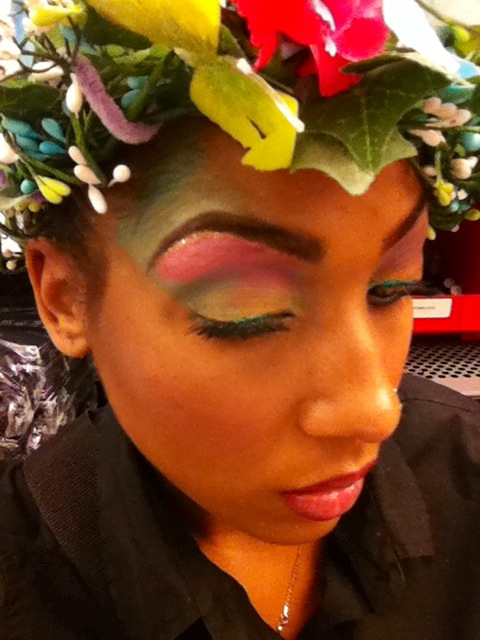 Every now and than myself and my girls at sephora like to come up with theme days to really express everyone's own creativity and work off one another's energy. The photos posted above represent our floral theme with a hand made head piece to tie everything together!